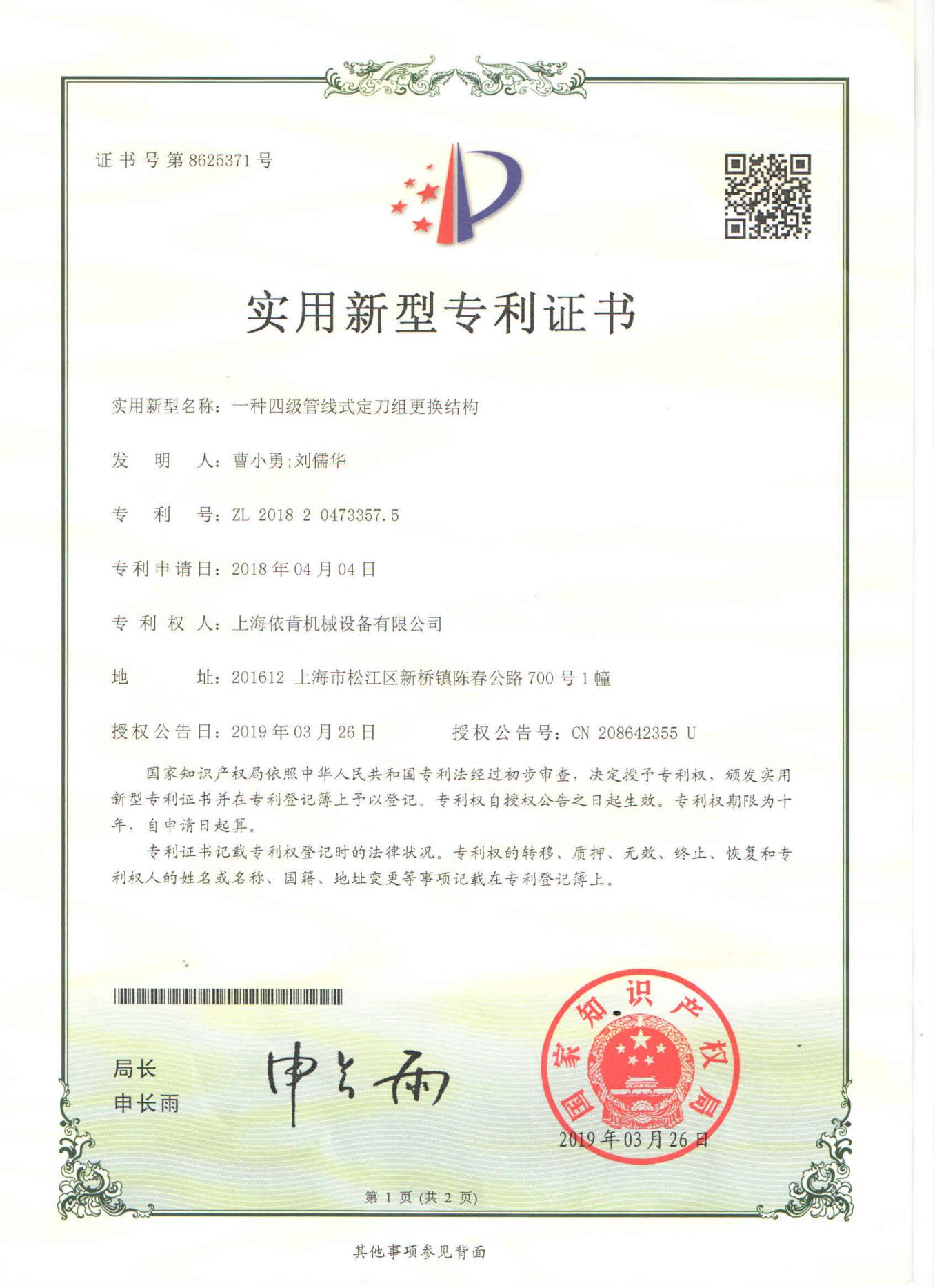 一種四級管線式定刀組更換結(jié)構(gòu)